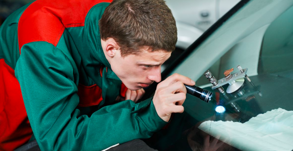 Technicians first inspect the damaged glass to determine whether repair or replacement is the safest option.